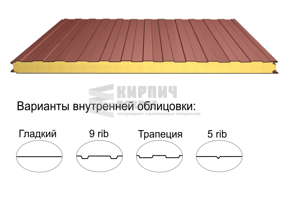 В интернет-магазине "Кирпич Вокруг" Вы можете купить Стеновая трёхслойная сэндвич-панель трапеция 100мм 1190мм с видимым креплением минеральная вата Полиэстер Доборник в Саратове, а наши специалисты готовы вам помочь с выбором по адресу: , или оказать консультацию по телефону: .
